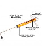 - El medidor lee de 0 a 12 libras en incrementos de 2 onzas y también está equipado con un bucle colgante para el almacenamiento.