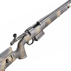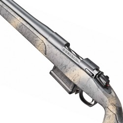 - El cañón de acero Bergara 4140 CrMo tiene un acabado Sniper Grey Cerakote®. El hocico está roscado e incluye un freno de Omni Bergara.