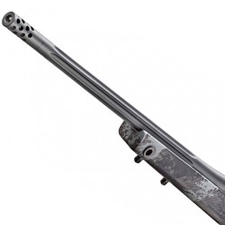 • El preciso cañón flotante de Bergara de este rifle viene con un estriado profundo y un freno de boca omnidireccional, acabado en Sniper Grey Cerakote™
