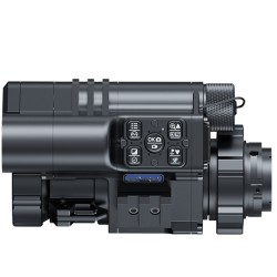 - Cuando se utiliza como clip-on de montaje frontal, junto con su adaptador de liberación rápida, ofrece una solución sencilla y perfecta para convertir rápidamente un visor óptico en un visor de imágenes térmicas manteniendo una gran experiencia.